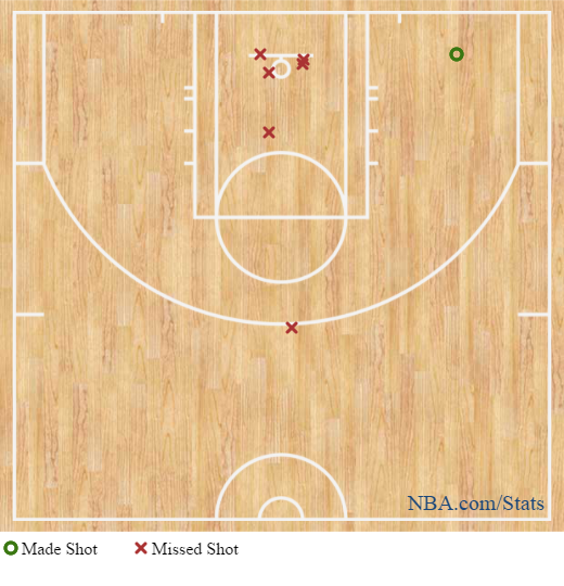 Not a typical shot chart for Kyrie so far — only red around the basket.