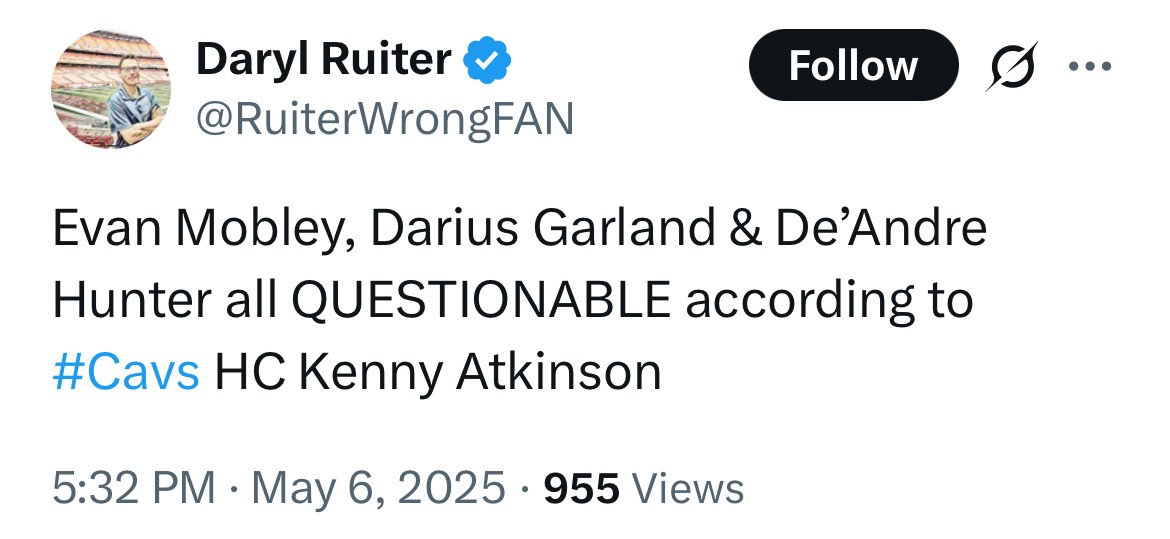 Saw a report around noon that Mobley, Hunter, and Garland did not take part in the morning shoot around. Assume that means they’ll be no go’s.