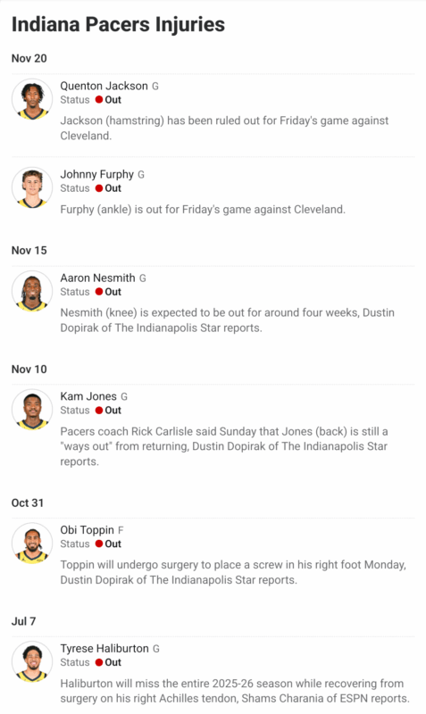 2025-11-21Friday before Thanksgiving week, and I couldn’t be more relieved to be heading back to Northeast Ohio for feasting. The good guys battle the 2-13 Pacers who are without some dudes.