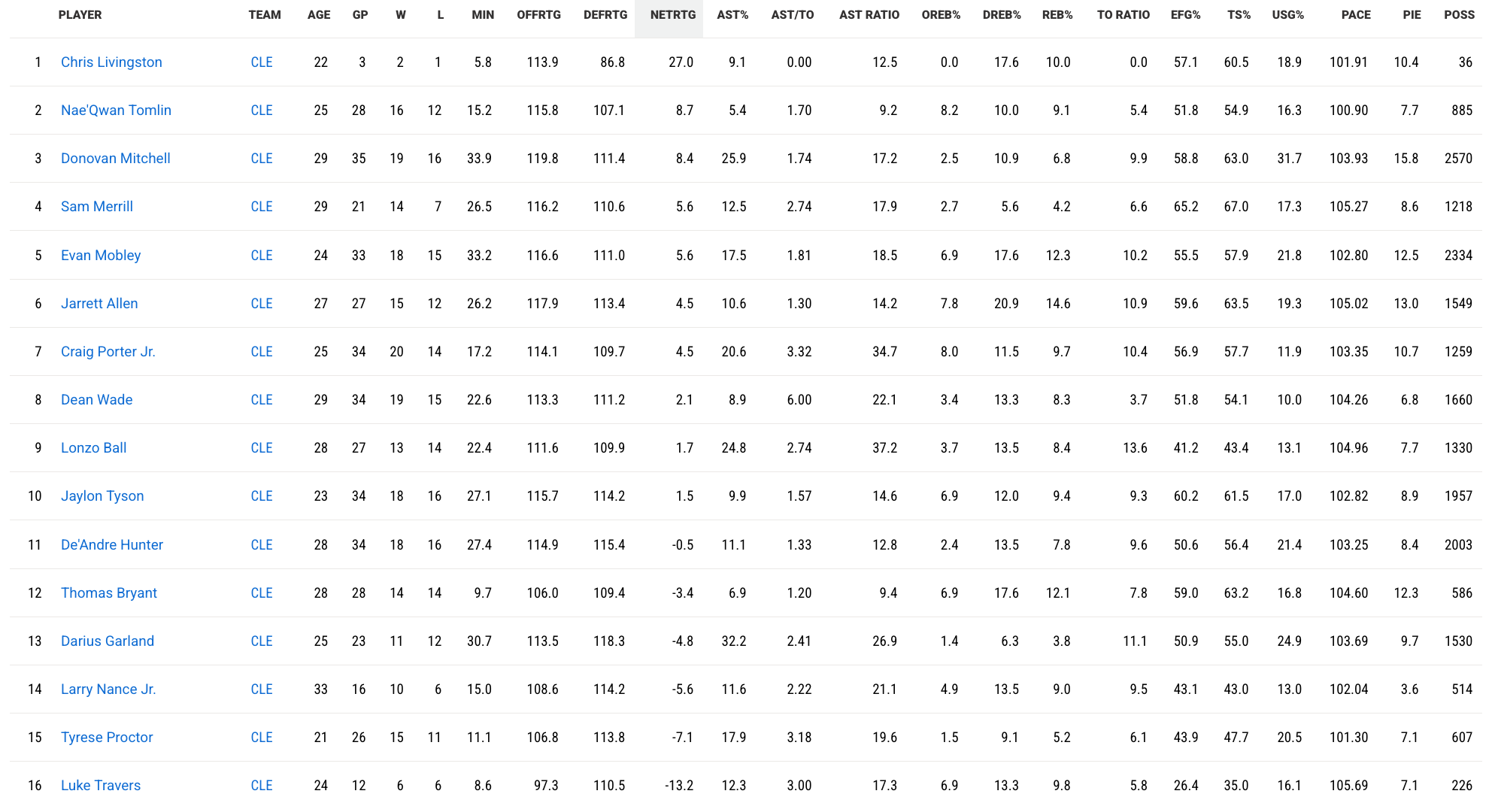 Cavs Net rating: